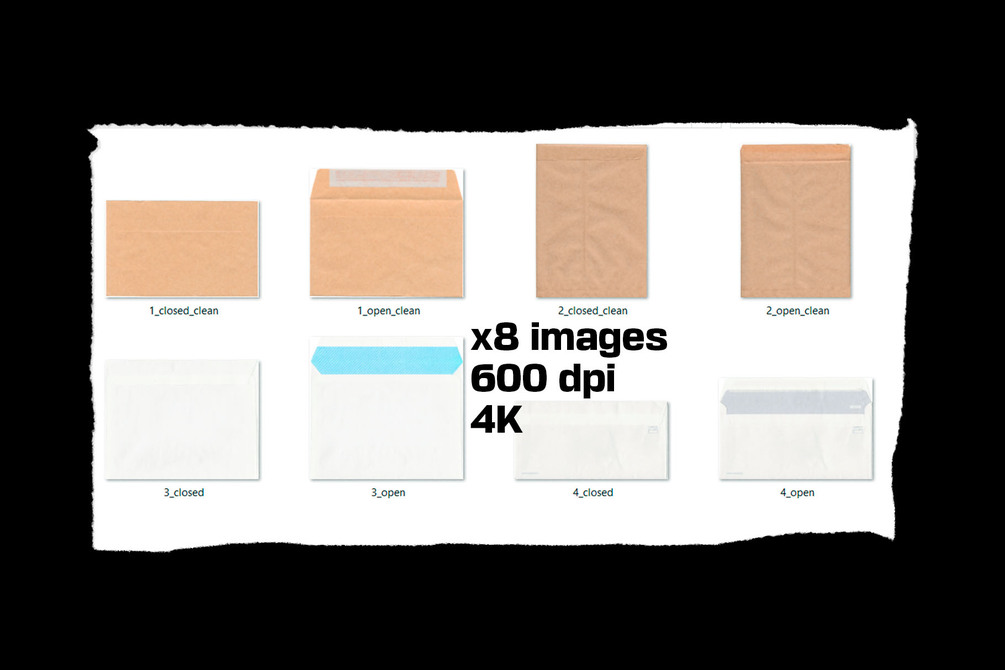 You will find open and closed envelopes, as well of recycled paper and white paper ones.